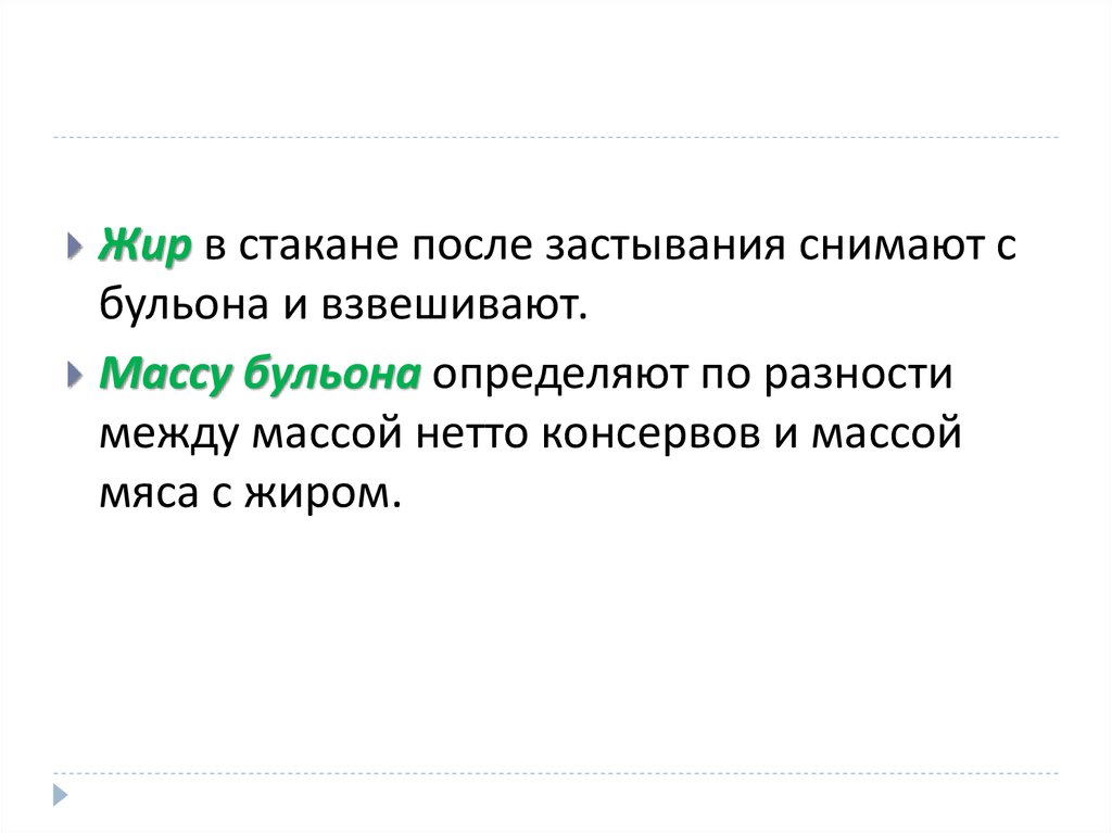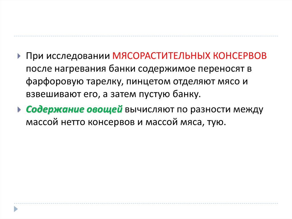 По разности между массой нетто и массой мясавычисляют в процентах к массе нетто консервов.