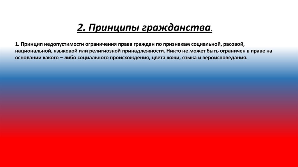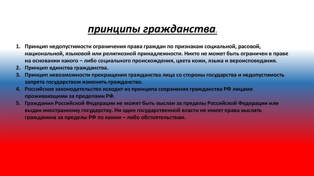 9. Теоретические основы конституционного строя. 5. Единое и равное гражданство независимо от оснований его приобретения (ни кому