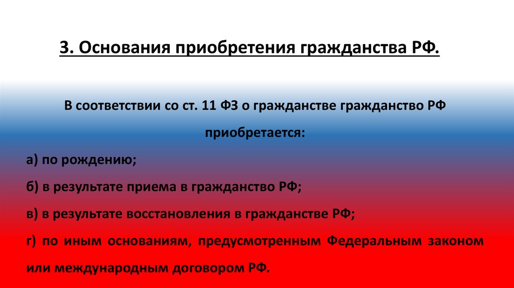 зависимости от способов приобретения гражданства).