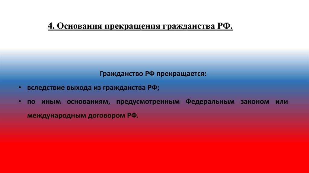 4. Основания прекращения гражданства РФ.44.