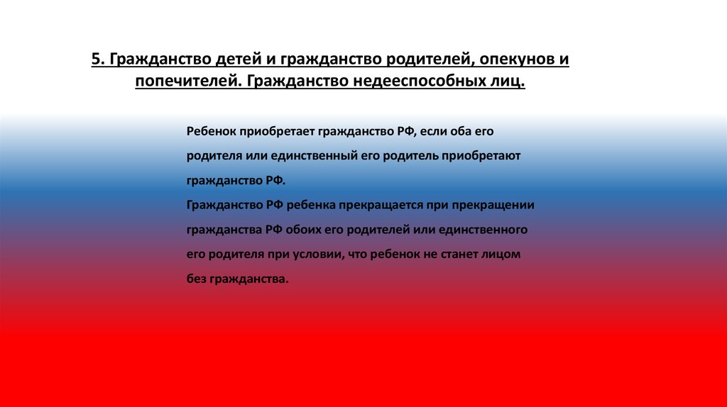 5. Гражданство детей и гражданство родителей, опекунов ипопечителей. Гражданство недееспособных лиц.