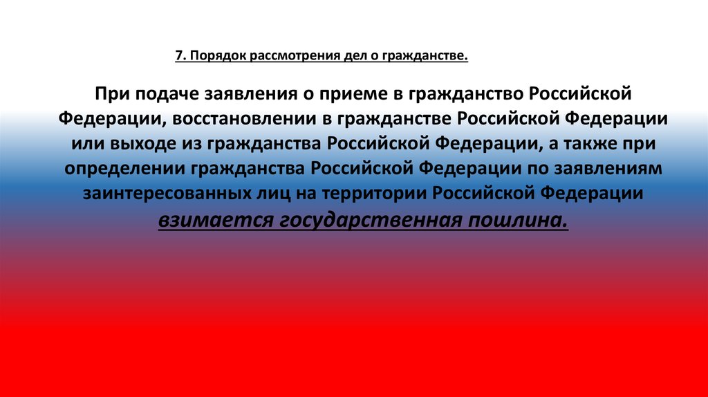 7. Порядок рассмотрения дел о гражданстве.При подаче заявления о приеме в гражданство Российской