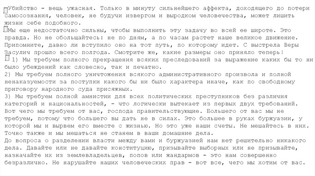 Вот чего мы требуем от вас, господа правительствующие. Большего от вас мы не