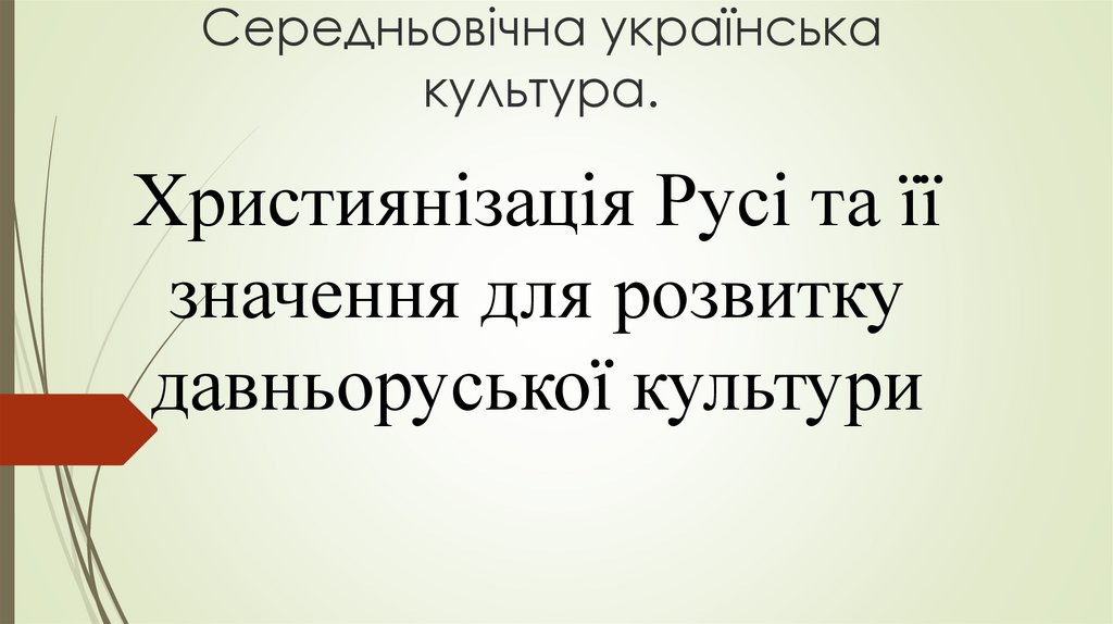 Середньовічна українська культура. Християнізація Русі та її значення для розвитку давньоруської культури