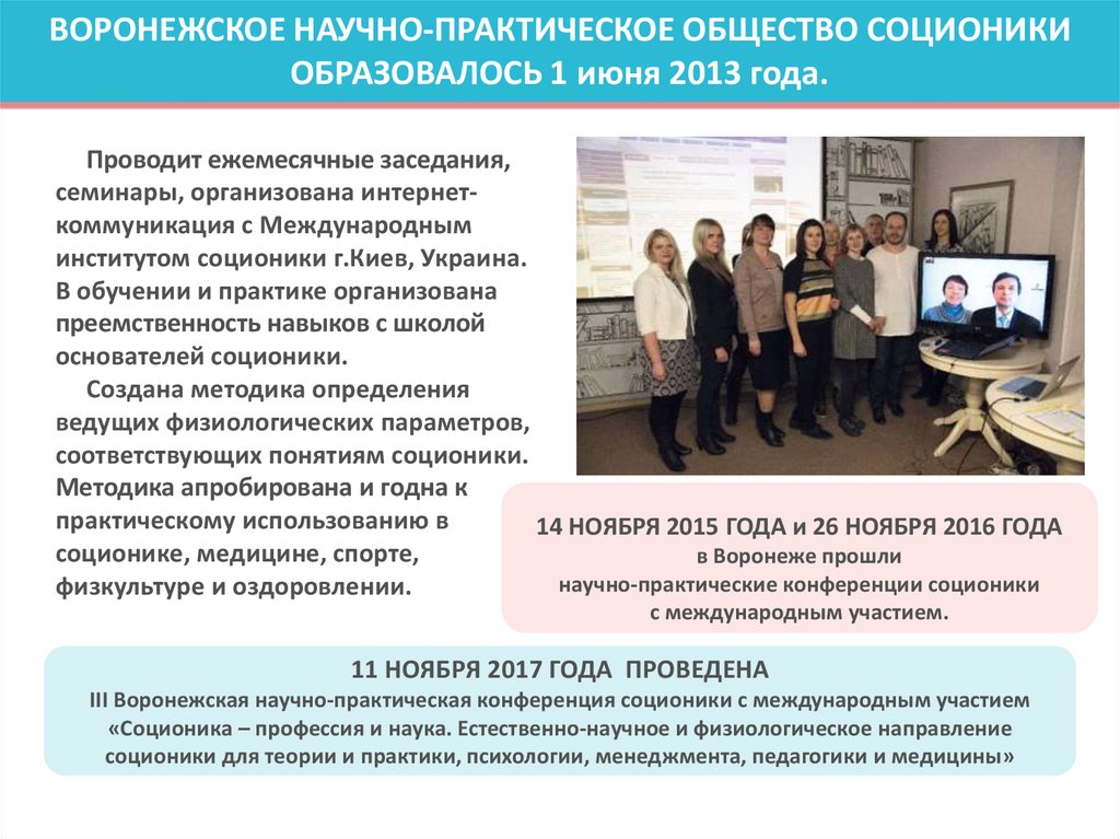 ВОРОНЕЖСКОЕ НАУЧНО-ПРАКТИЧЕСКОЕ ОБЩЕСТВО СОЦИОНИКИОБРАЗОВАЛОСЬ 1 июня 2013 года.