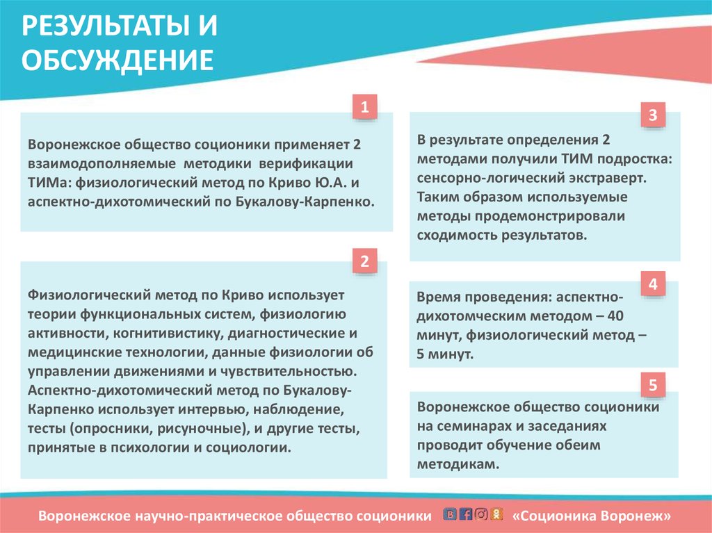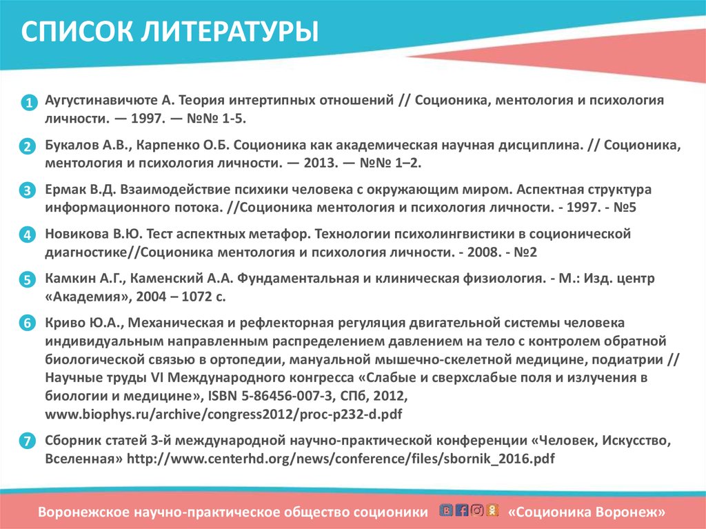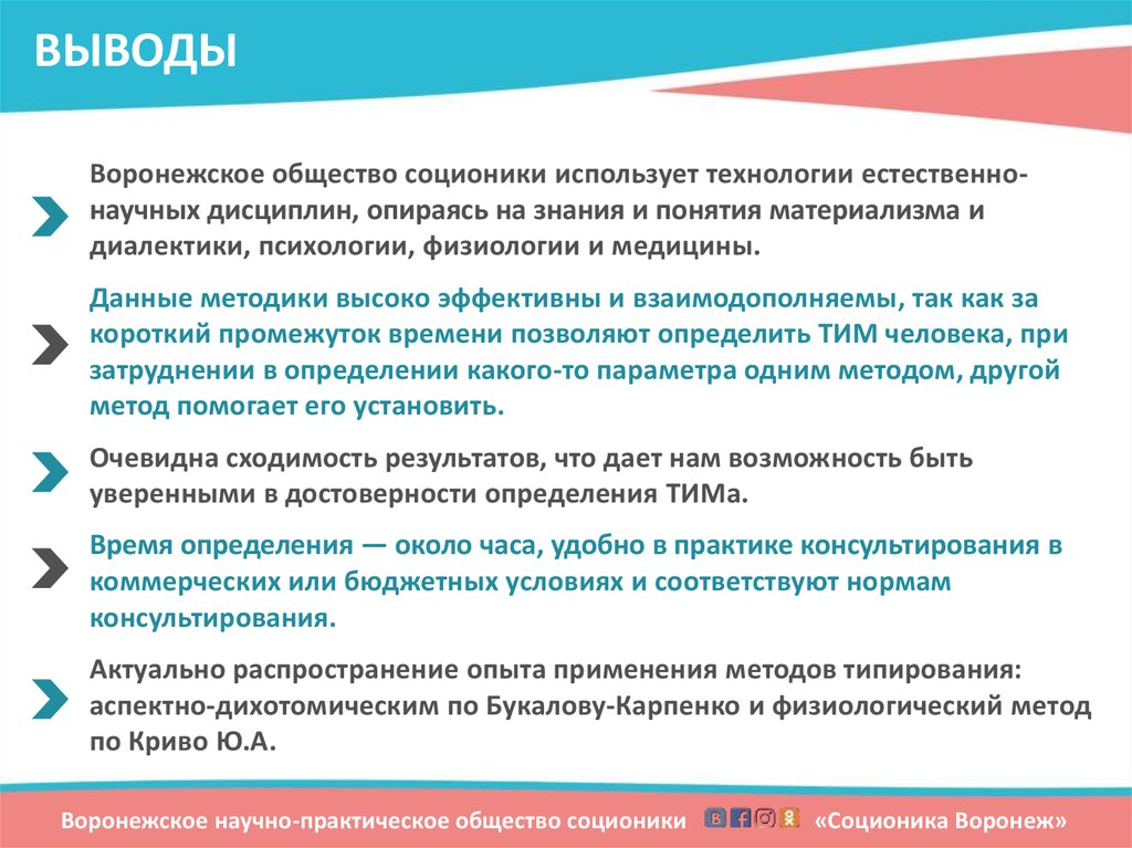 ВЫВОДЫВоронежское общество соционики использует технологии естественнонаучных дисциплин, опираясь на знания и понятия материализма и