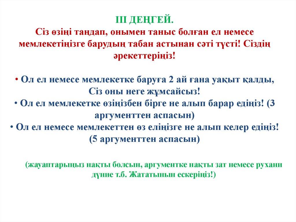 ІІІ ДЕҢГЕЙ.Сіз өзіңі таңдап, онымен таныс болған ел немесе