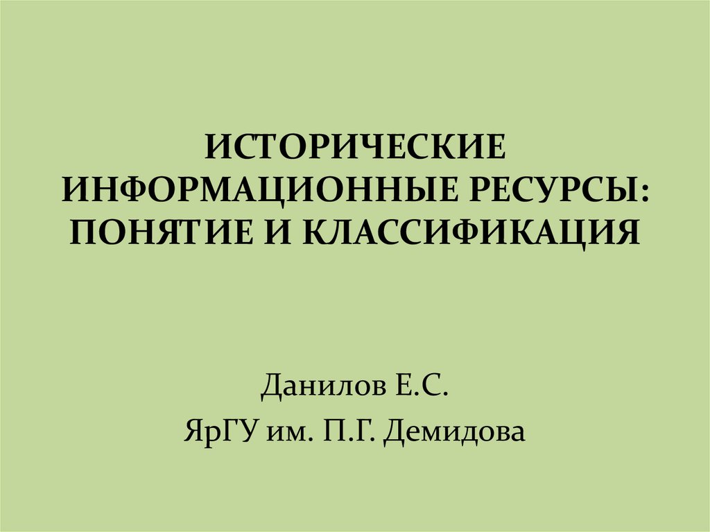 1. ИСТОРИЧЕСКИЕ ИНФОРМАЦИОННЫЕ РЕСУРСЫ: ПОНЯТИЕ И КЛАССИФИКАЦИЯ