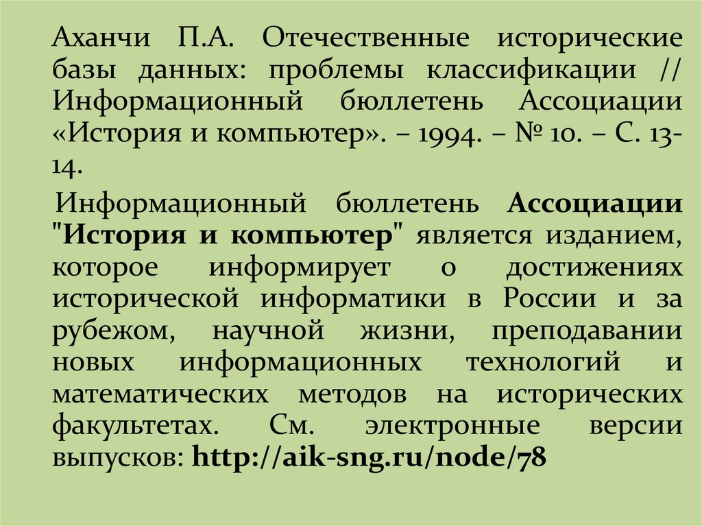 «История и компьютер». – 1994. – № 10. – С. 1314.