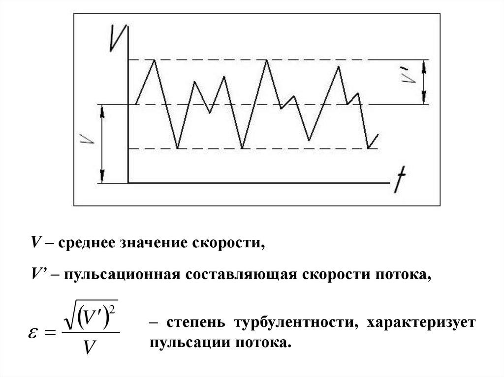 V – среднее значение скорости,V’ – пульсационная составляющая скорости потока,