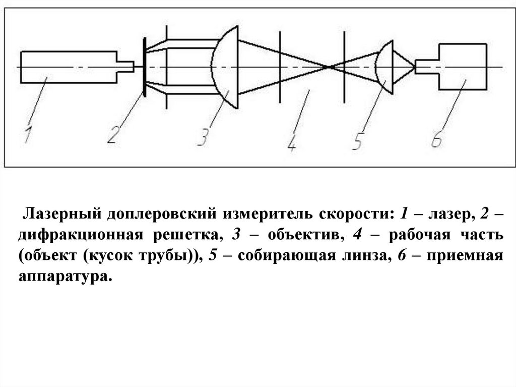 Лазерный доплеровский измеритель скорости: 1 – лазер, 2 –дифракционная решетка, 3 – объектив, 4 – рабочая часть