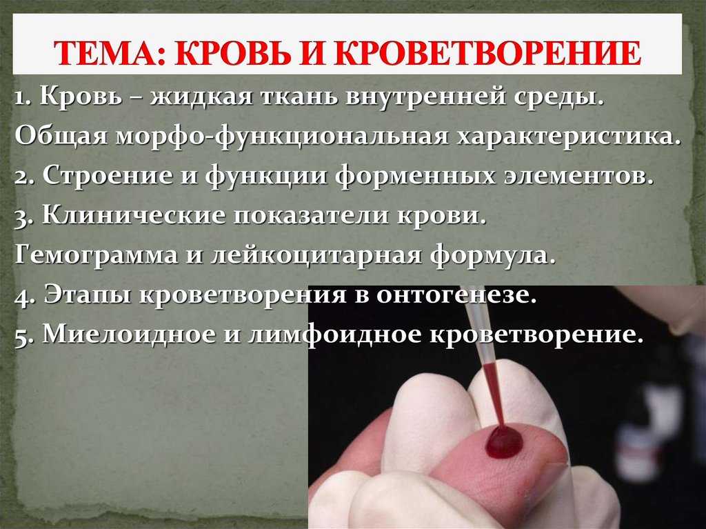 1. ТЕМА: КРОВЬ И КРОВЕТВОРЕНИЕ