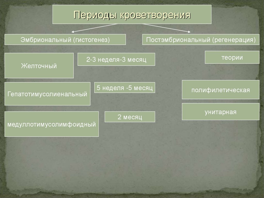 Периоды кроветворенияЭмбриональный (гистогенез)