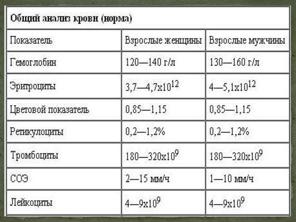 3. Клинические показатели крови.