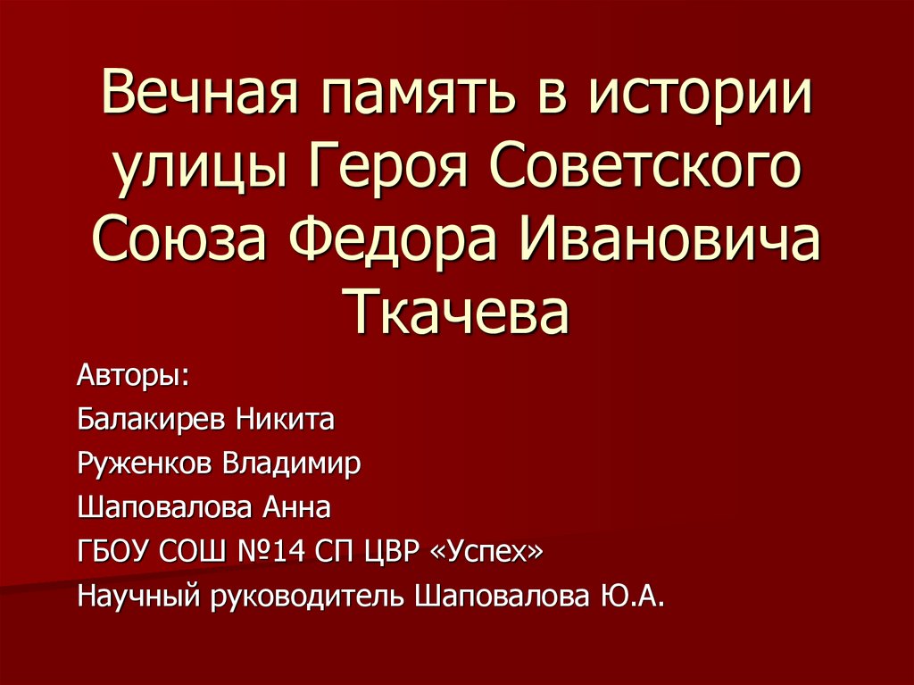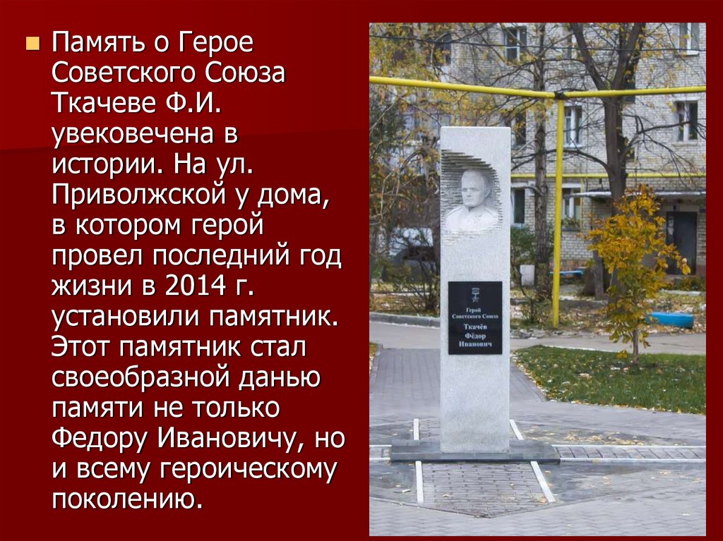 1. Вечная память в истории улицы Героя Советского Союза Федора Ивановича Ткачева