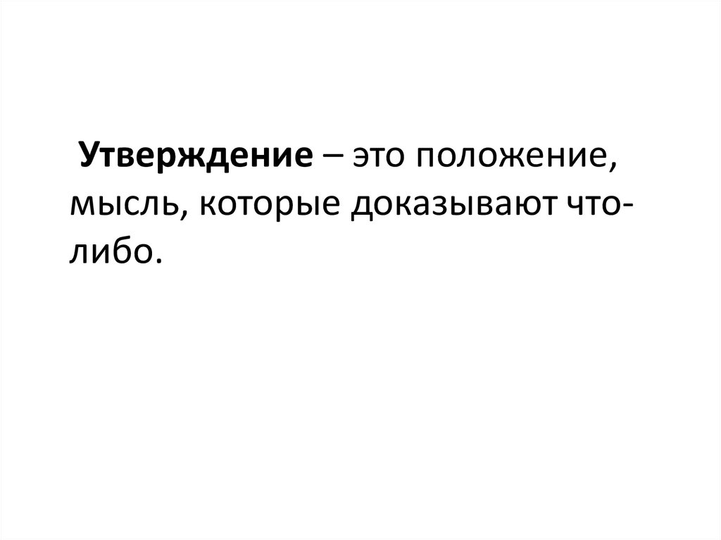 Утверждение – это положение,мысль, которые доказывают чтолибо.