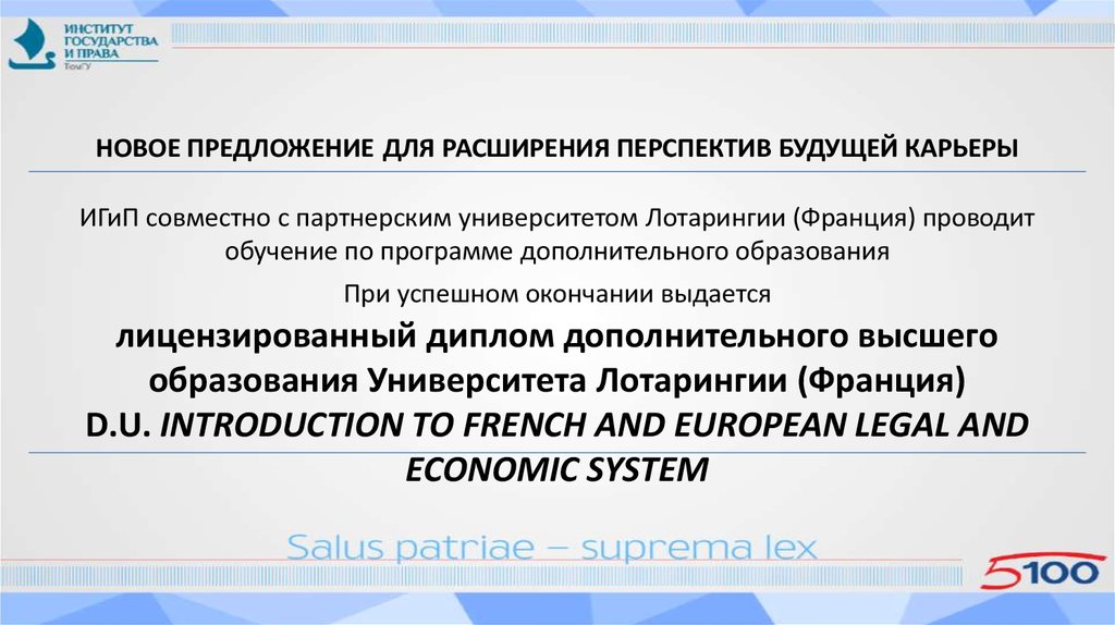 1. НОВОЕ ПРЕДЛОЖЕНИЕ ДЛЯ РАСШИРЕНИЯ ПЕРСПЕКТИВ БУДУЩЕЙ КАРЬЕРЫ ИГиП совместно с партнерским университетом Лотарингии (Франция)