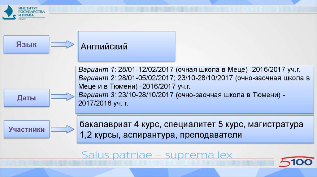 Вариант 2: 28/01-05/02/2017; 23/10-28/10/2017 (очно-заочная школа в