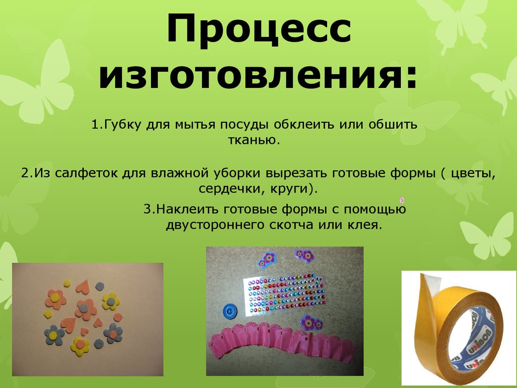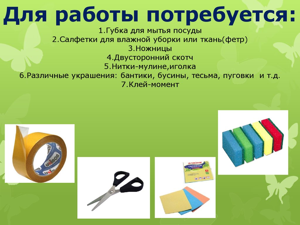Для работы потребуется:1.Губка для мытья посуды