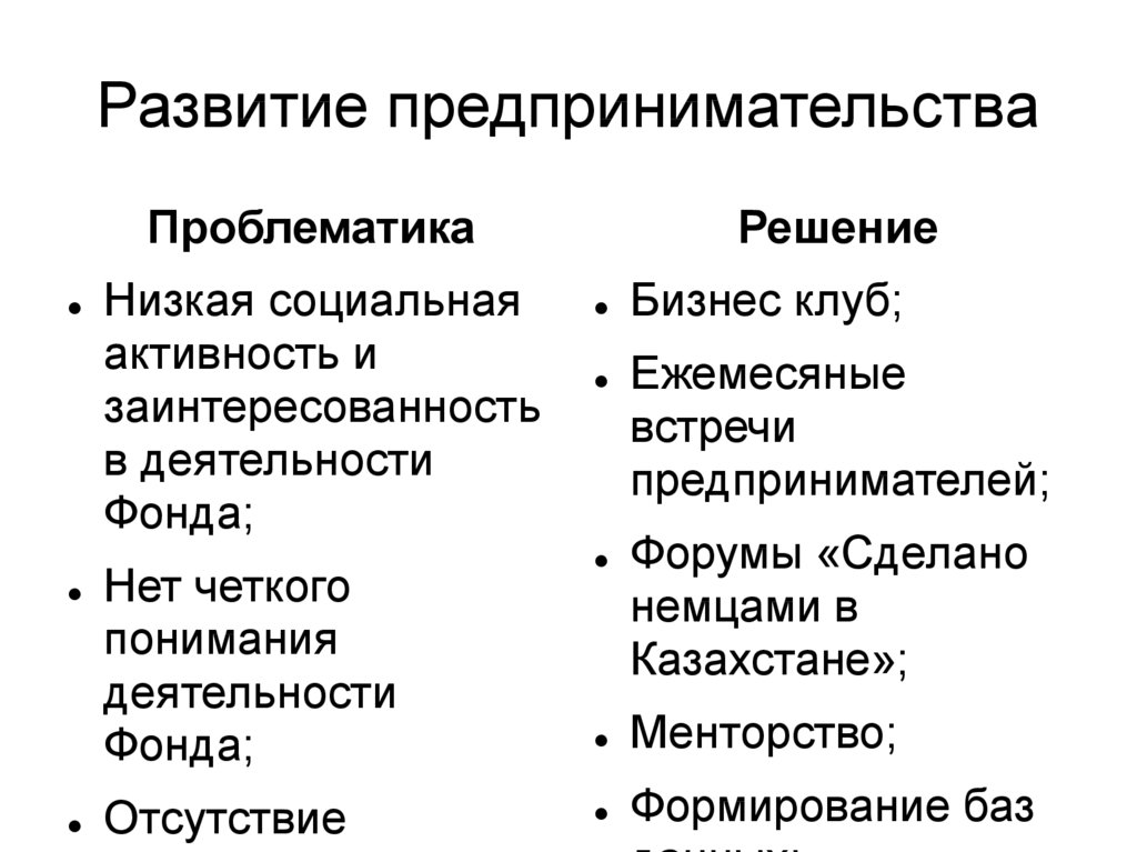 Развитие предпринимательстваПроблематика