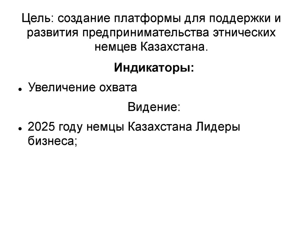 Цель: создание платформы для поддержки иразвития предпринимательства этнических