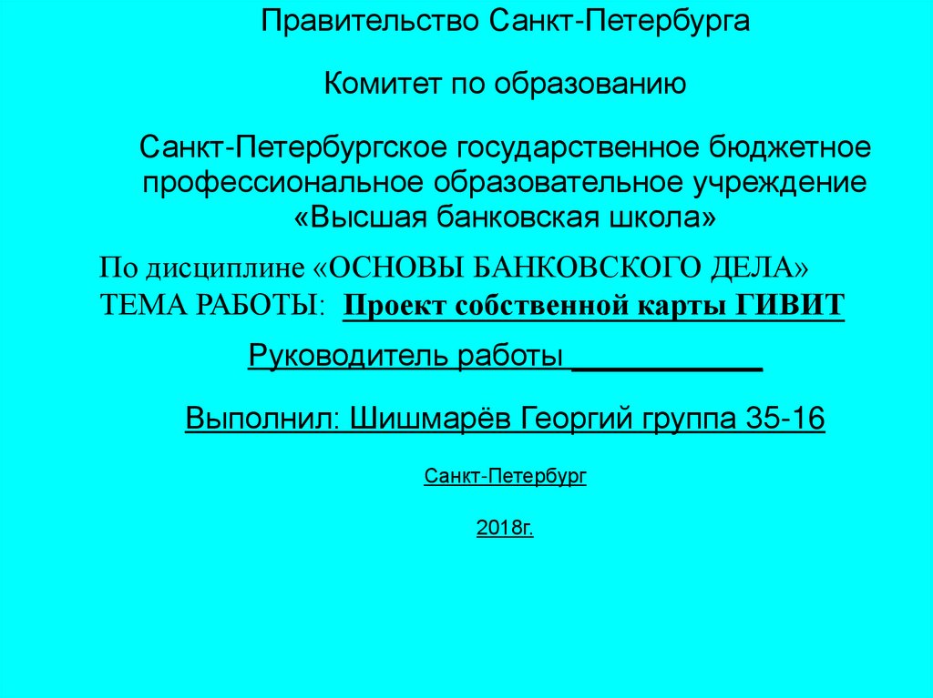 ТЕМА РАБОТЫ: Проект собственной карты ГИВИТ