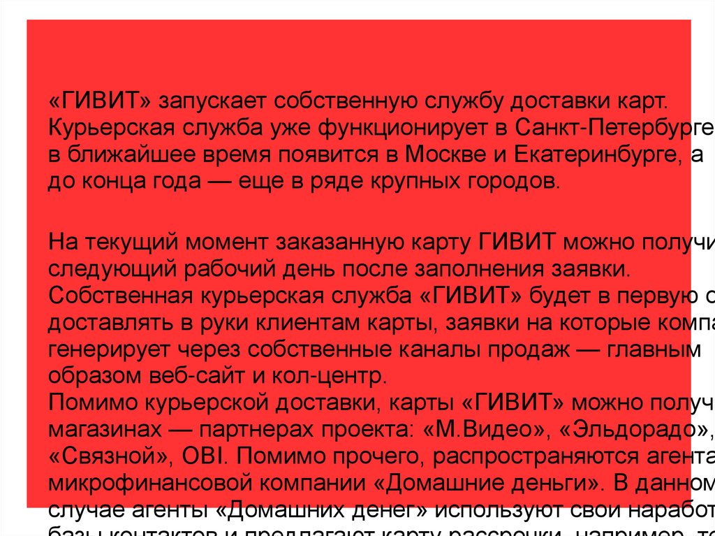 «ГИВИТ» запускает собственную службу доставки карт.Курьерская служба уже функционирует в Санкт-Петербурге,