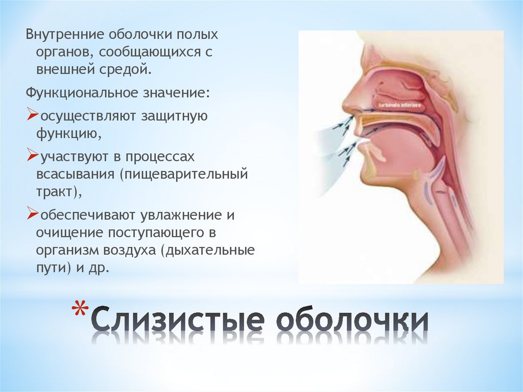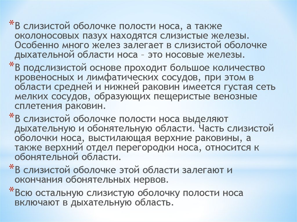 *В слизистой оболочке полости носа, а такжеоколoносовых пазух находятся слизистые железы.