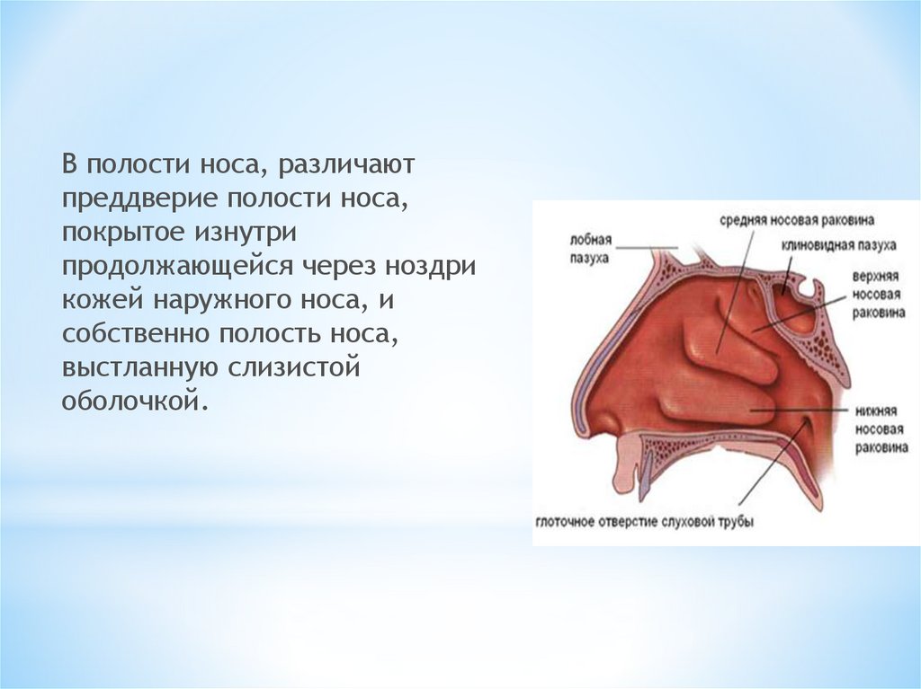 В полости носа, различаютпреддверие полости носа,