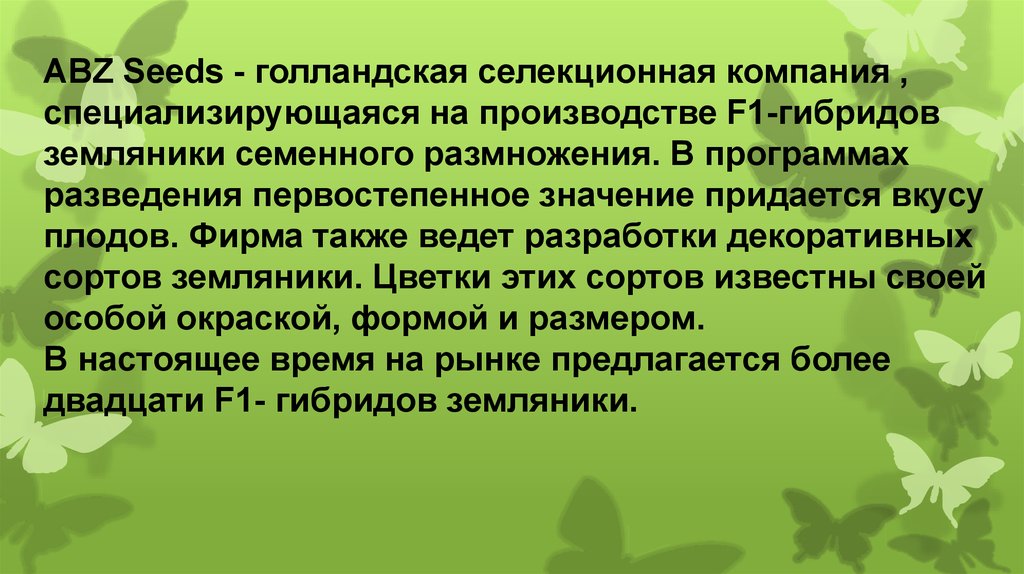 Земляника нейтрального светового дня. Голландская селекционная компания АBZ Seeds