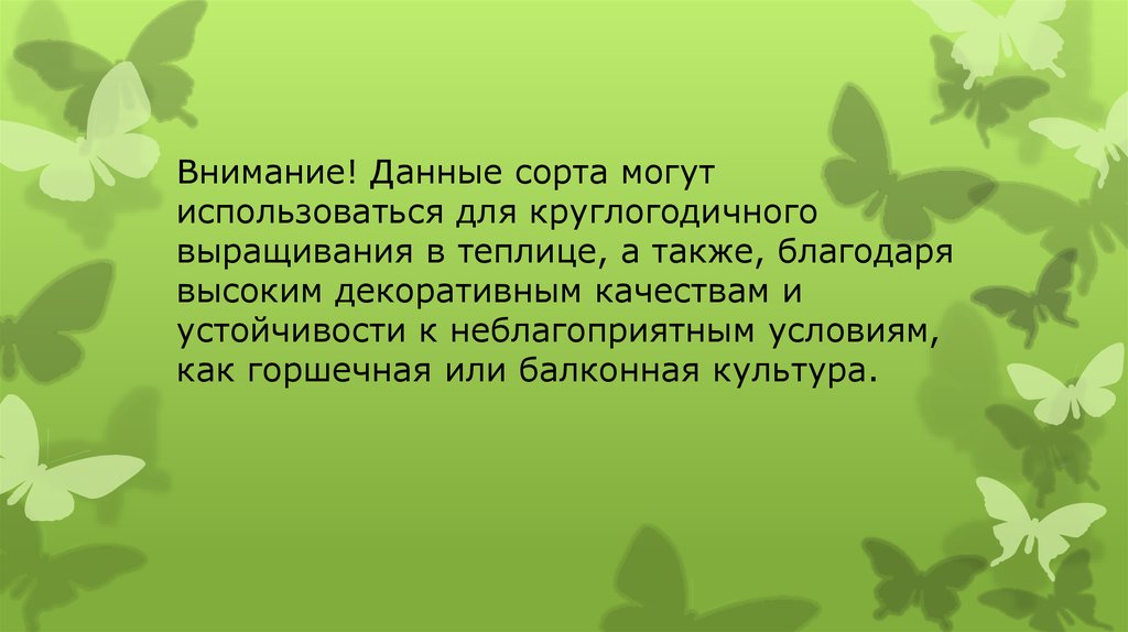 Внимание! Данные сорта могутиспользоваться для круглогодичного