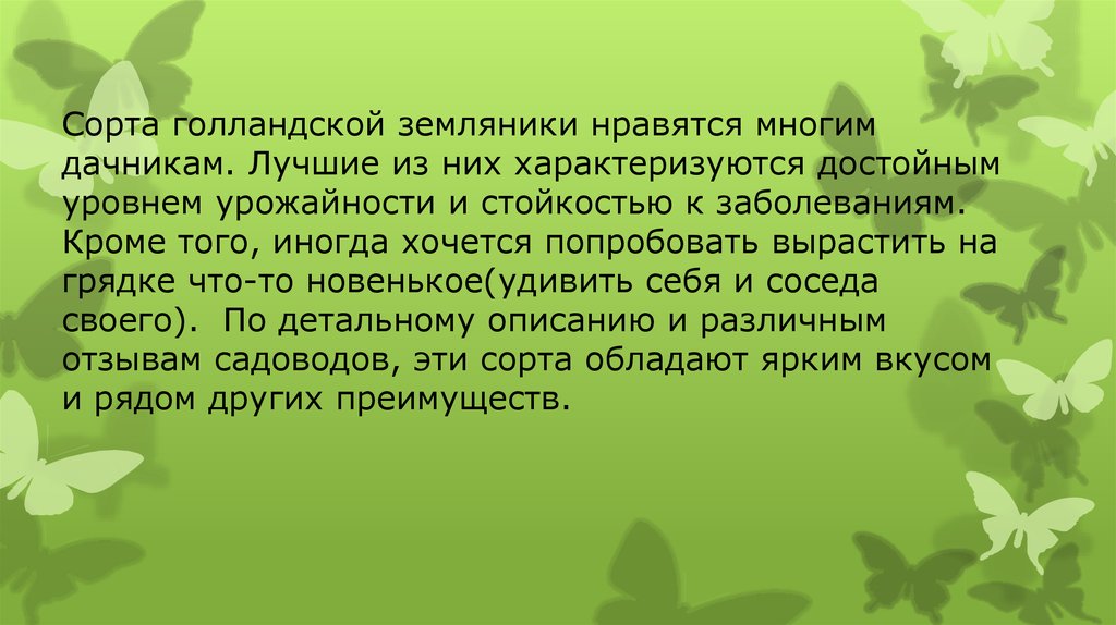 Сорта голландской земляники нравятся многимдачникам. Лучшие из них характеризуются достойным