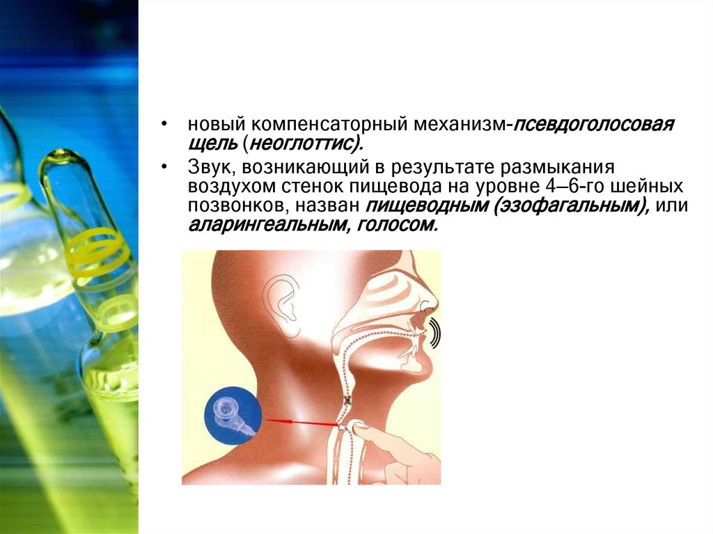 • новый компенсаторный механизм-псевдоголосоваящель (неоглоттис).