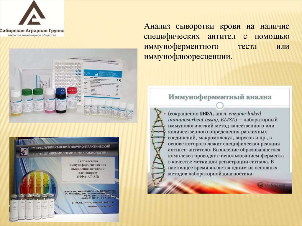 Анализ сыворотки крови на наличиеспецифических антител с помощью