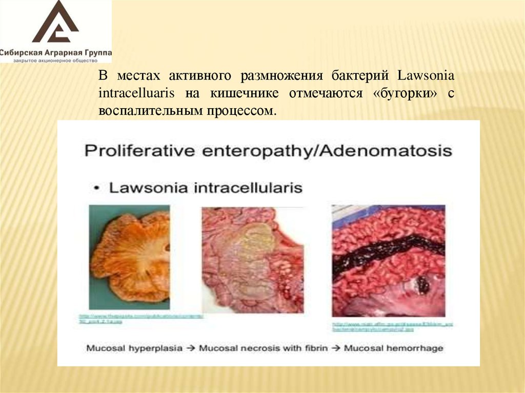 В местах активного размножения бактерий Lawsoniaintracelluaris на кишечнике отмечаются «бугорки» с