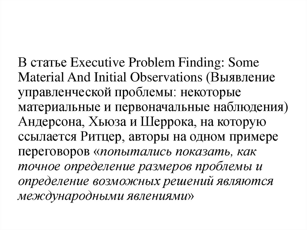 В статье Executive Problem Finding: SomeMaterial And Initial Observations (Выявление