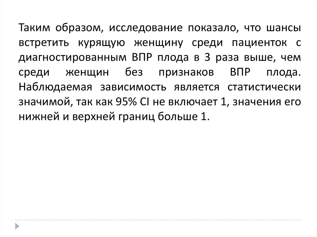 Таким образом, исследование показало, что шансывстретить курящую женщину среди пациенток с