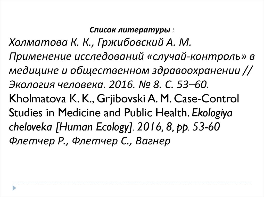 Список литературы :Холматова К. К., Гржибовский А. М.