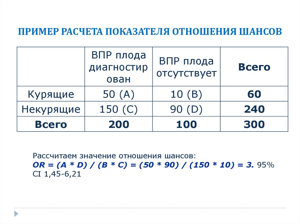 ПРИМЕР РАСЧЕТА ПОКАЗАТЕЛЯ ОТНОШЕНИЯ ШАНСОВВПР плода