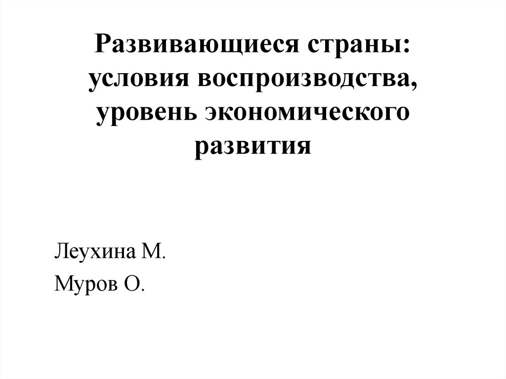 Развивающиеся страны: условия воспроизводства, уровень экономического развития