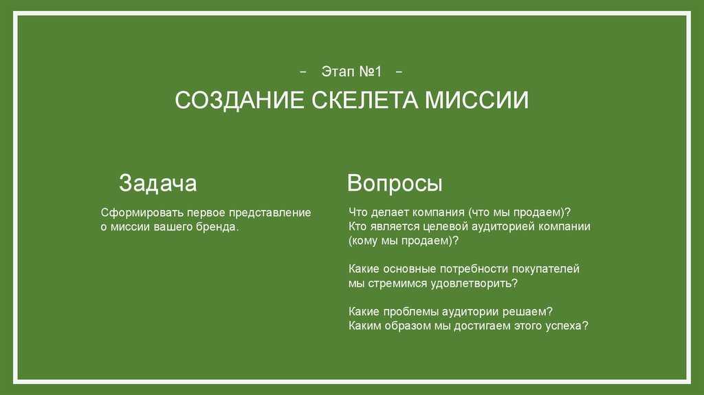 задачаОПРЕДЕЛИТЬ МИССИЮ ВАШЕЙ