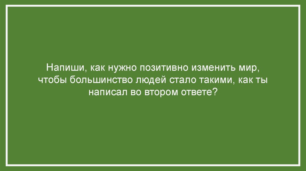 Напиши, как нужно позитивно изменить мир,чтобы большинство людей стало такими, как ты
