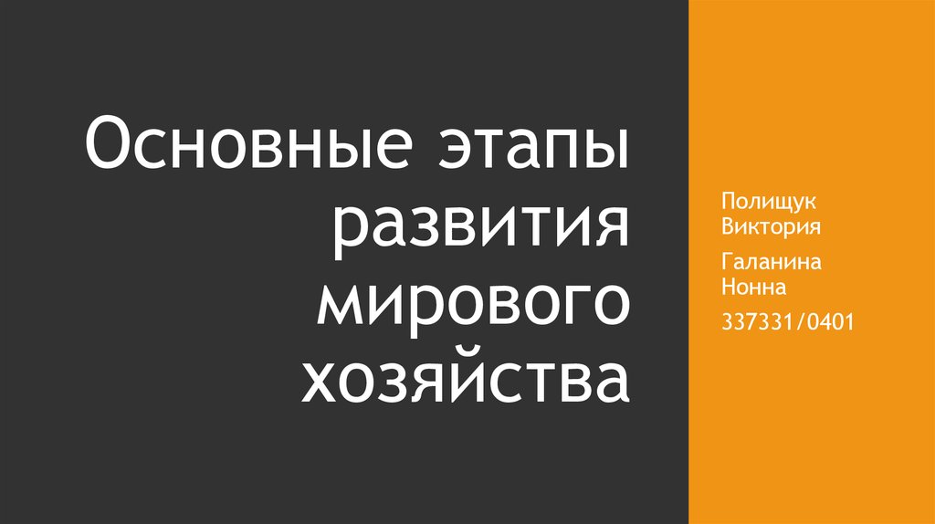 Основные этапы развития мирового хозяйства