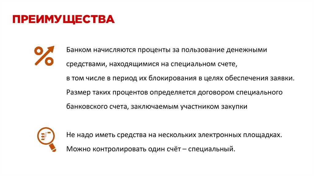 Не надо иметь средства на нескольких электронных площадках.