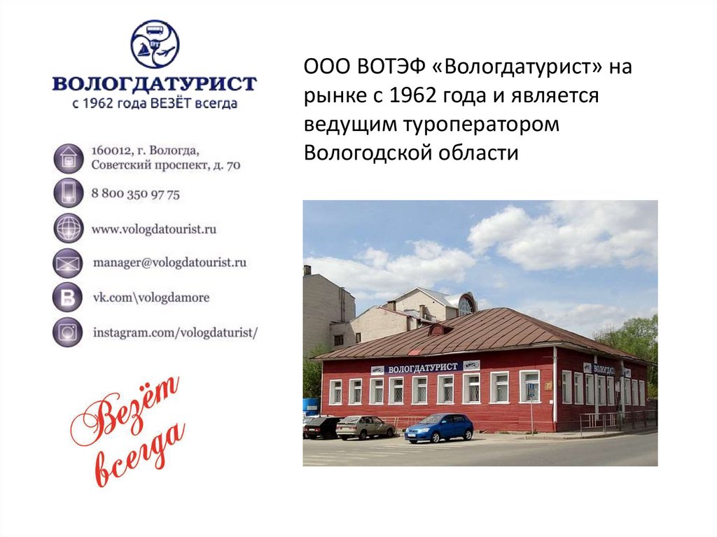 ООО ВОТЭФ «Вологдатурист» нарынке с 1962 года и является
