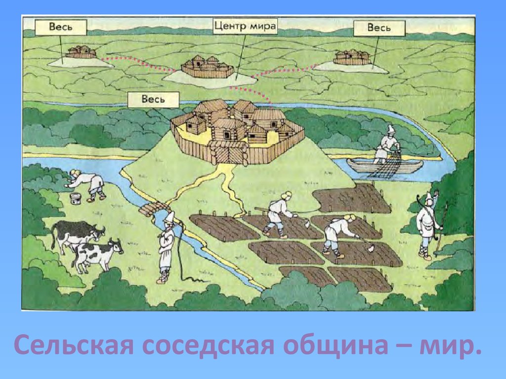 РАЗВИВАЛОСЬ ЗЕМЛЕДЕЛИЕ И ГОРОДА.СЛОЖИЛИСЬ СЕЛЬСКИЕ СОСЕДСКИЕ ОБЩИНЫ – МИРЫ.