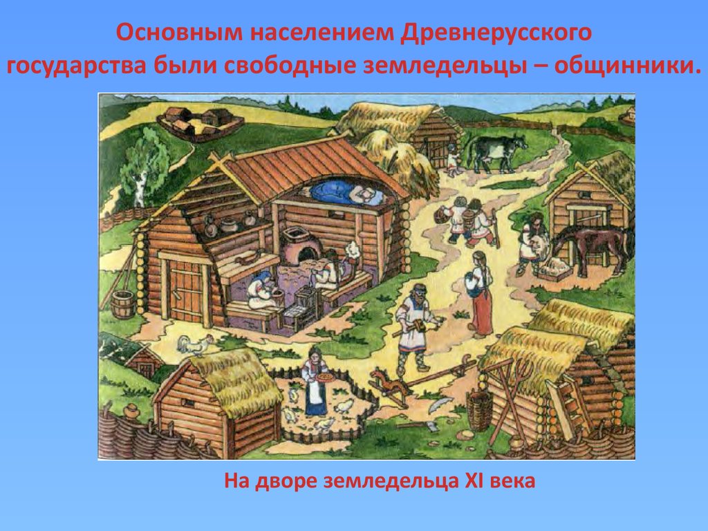 Основным населением Древнерусскогогосударства были свободные земледельцы – общинники.