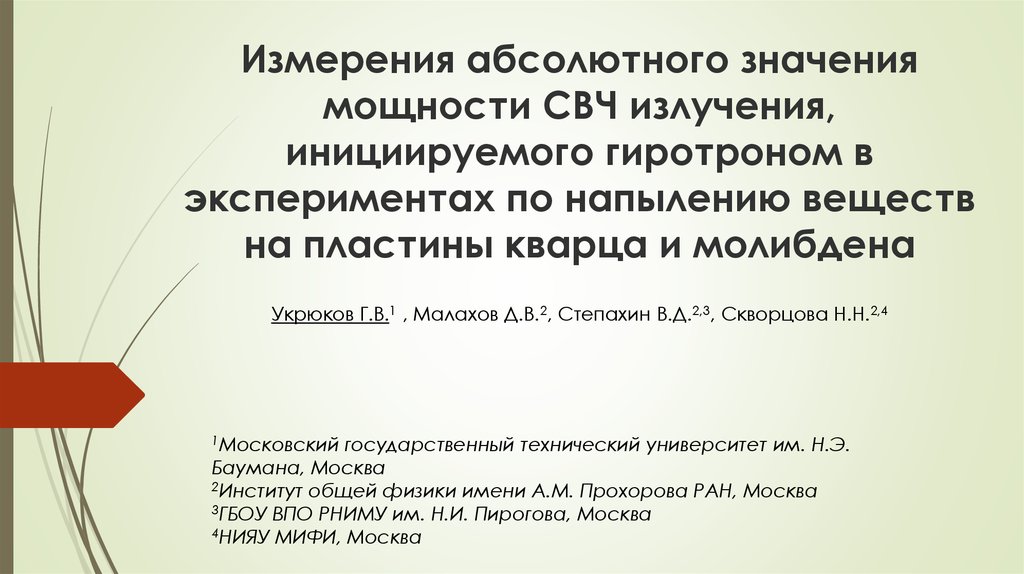 пластины кварца и молибденаУкрюков Г.В.1 , Малахов Д.В.2, Степахин В.Д.2,3, Скворцова Н.Н.2,4