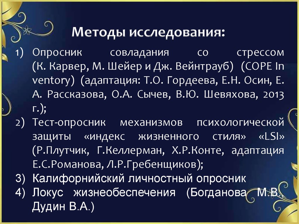 Цель исследования:изучение динамики защитно-совладающих