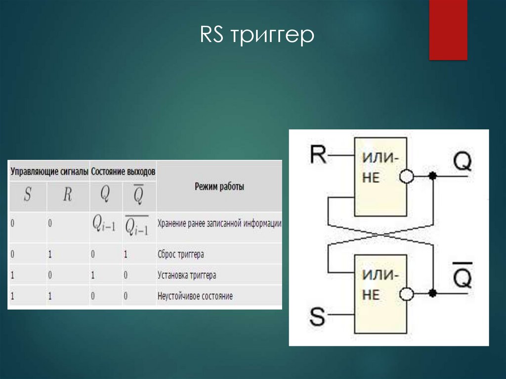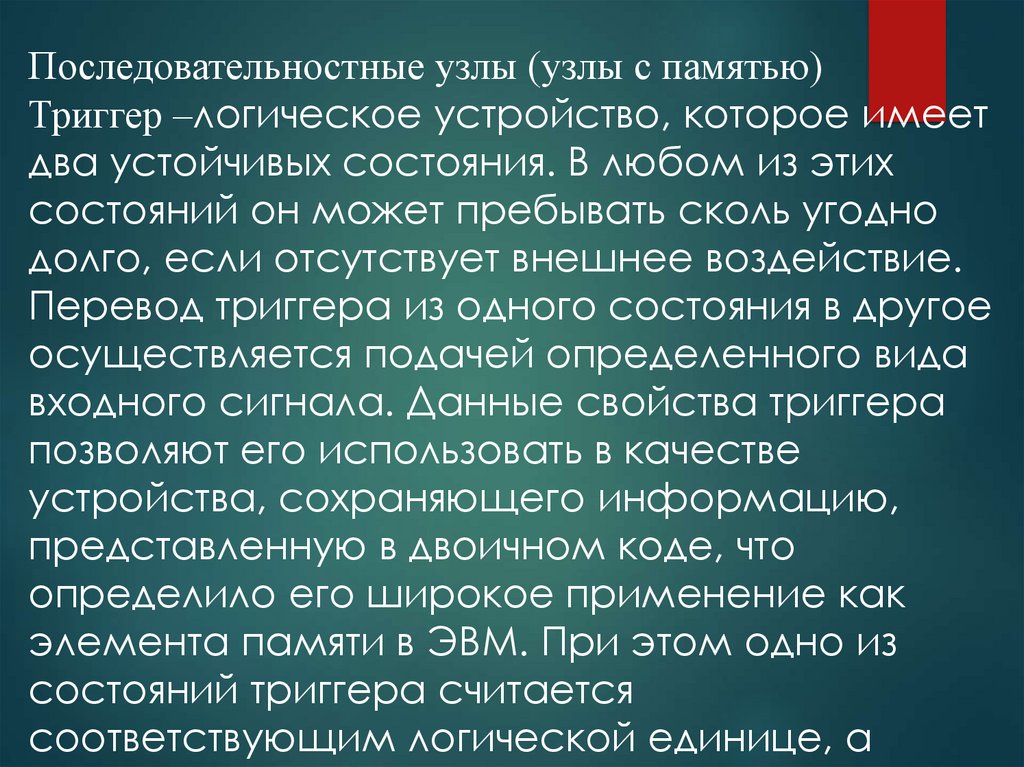 Последовательностные узлы (узлы с памятью)Триггер –логическое устройство, которое имеет